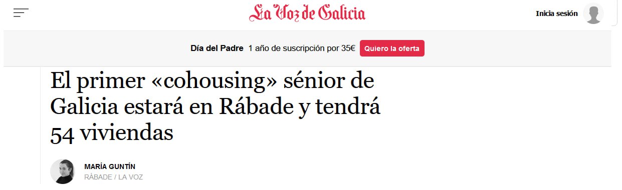 El primer «cohousing» sénior de Galicia estará en Rábade y tendrá 54 viviendas (La Voz de Galicia, 05/03/2023)